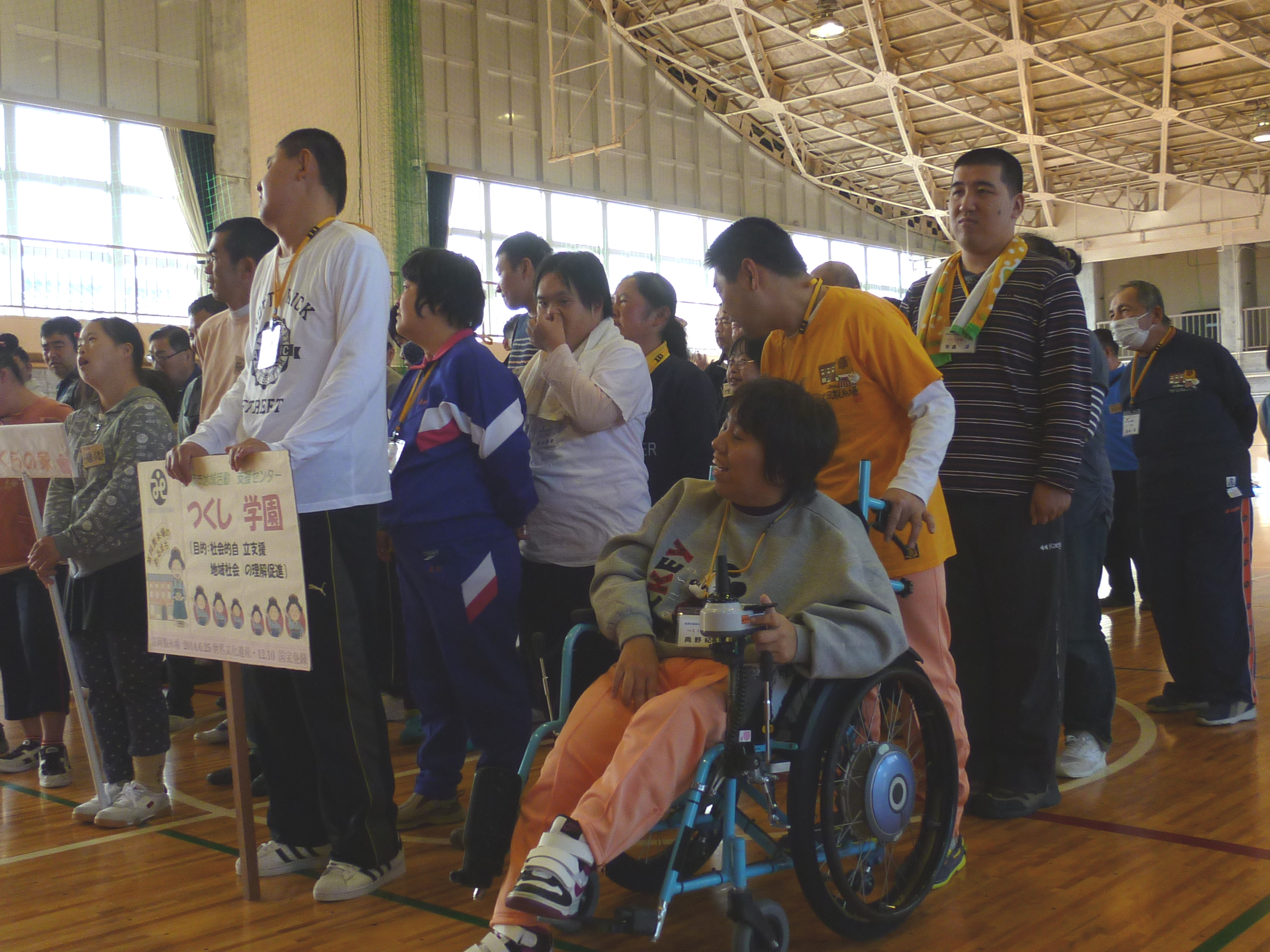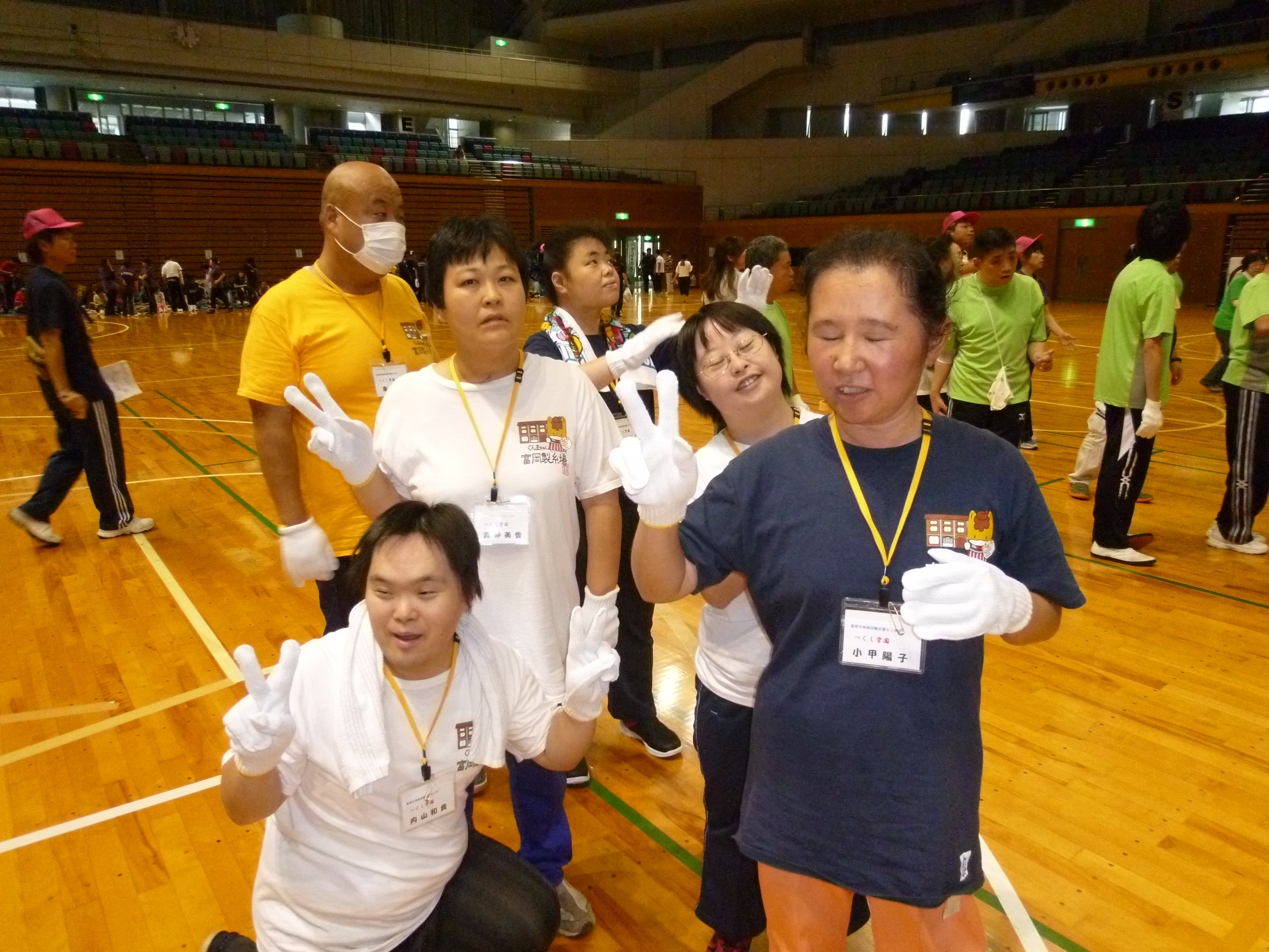 9月26日(金)、前橋市の群馬アリーナで開催された第25回あいあいレクリエーション大会に参加しました。群馬県福祉作業所連絡協議会の属する県下の福祉作業所及び地域活動支援センターが一堂に集い、ゲーム等を通じて親睦を図る大会で、つくし学園の利用者の方たちが楽しみにしているイベントのひとつです。