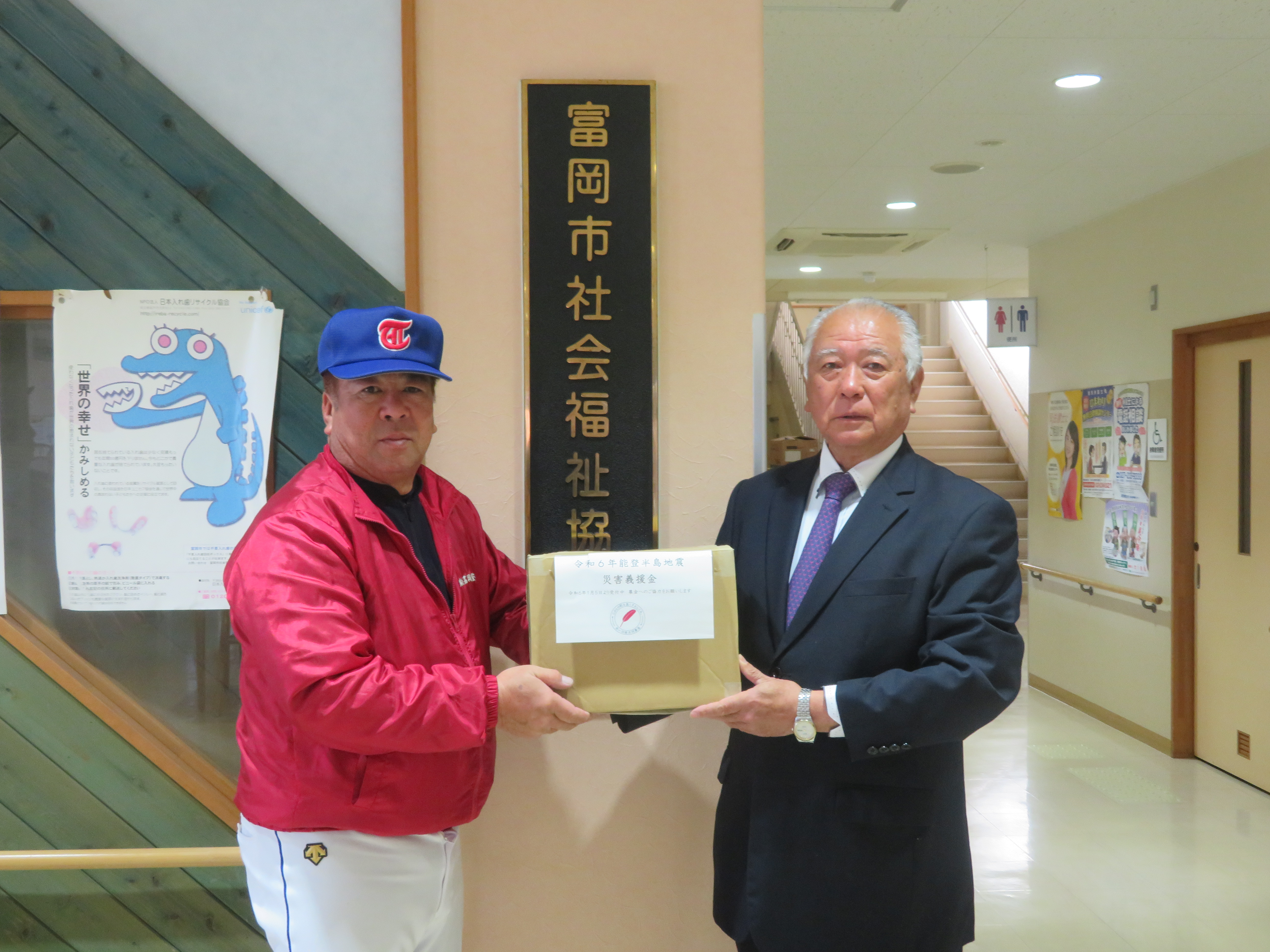 令和6年3月2日(土)、甘楽富岡少年野球監督会(原嶋猛会長)より令和6年能登半島地震災害義援金をお預かりしました。