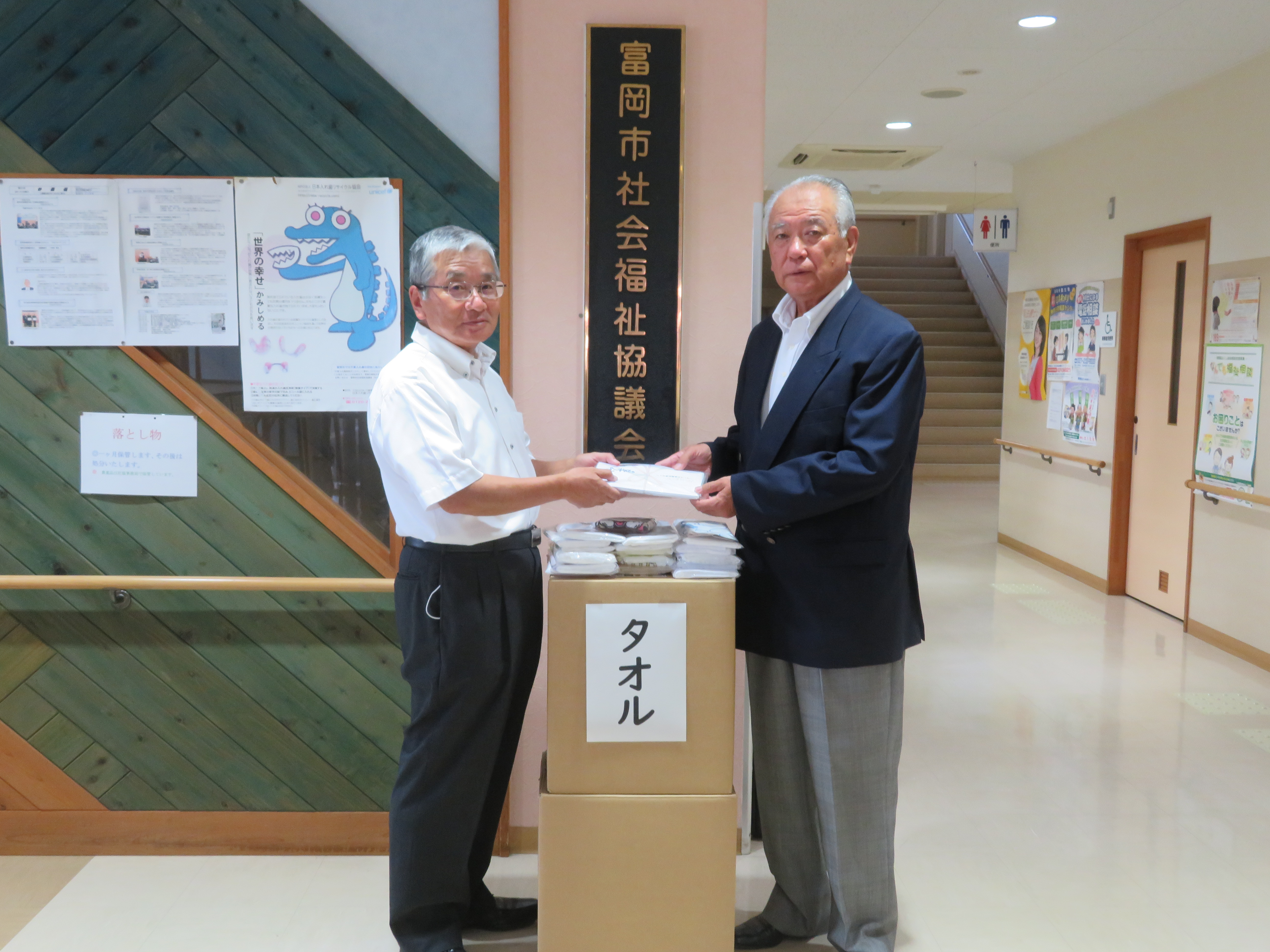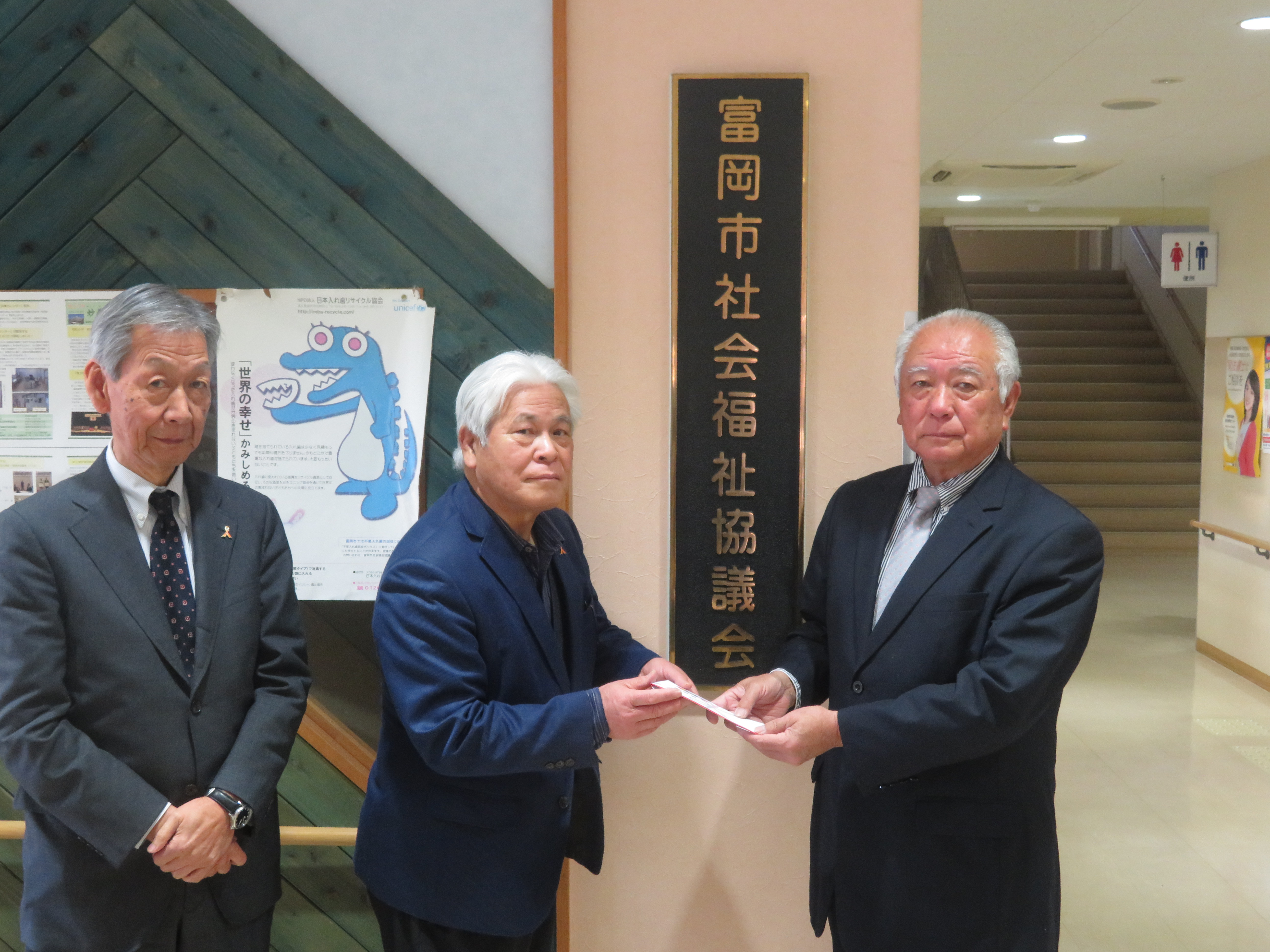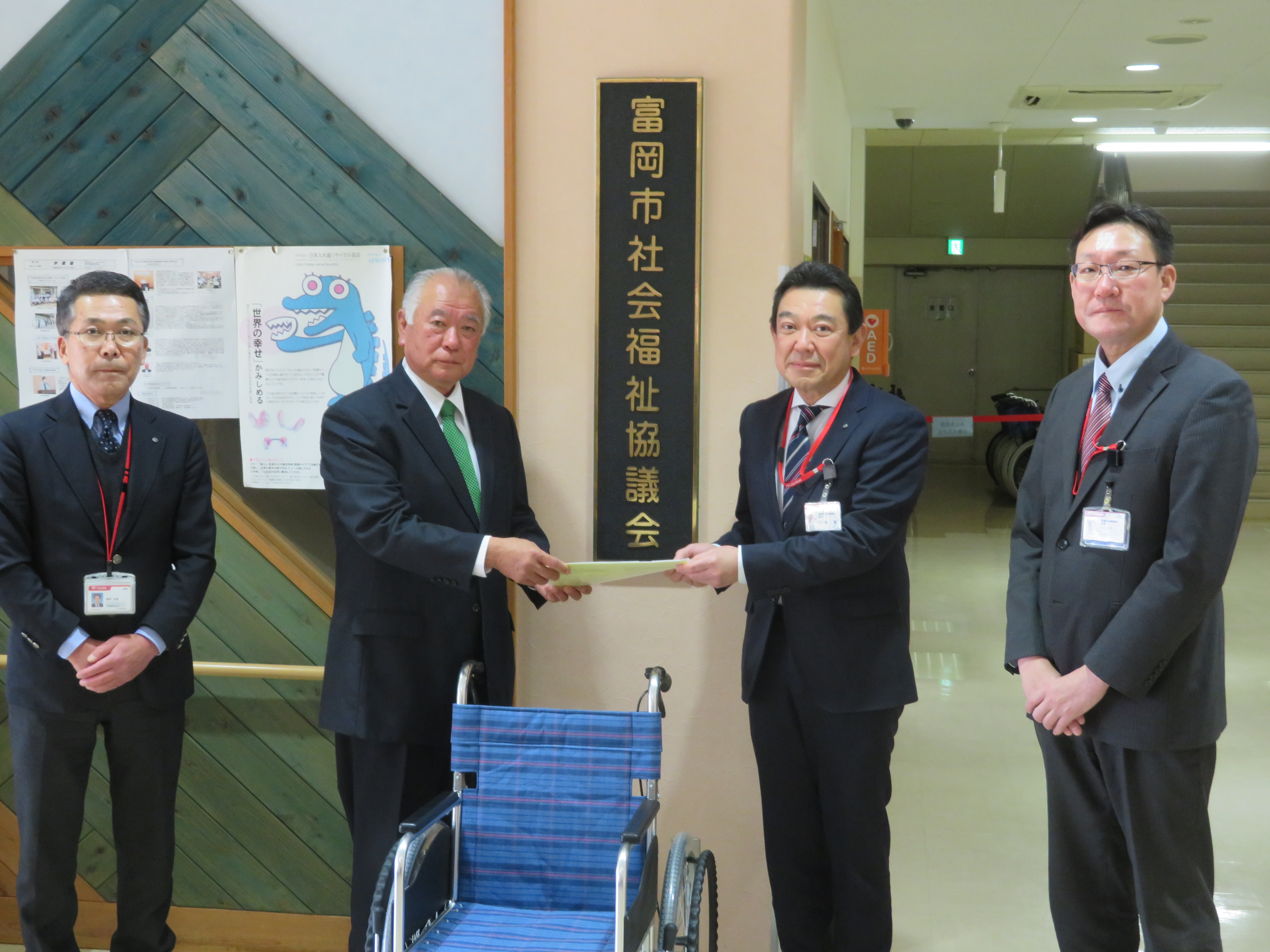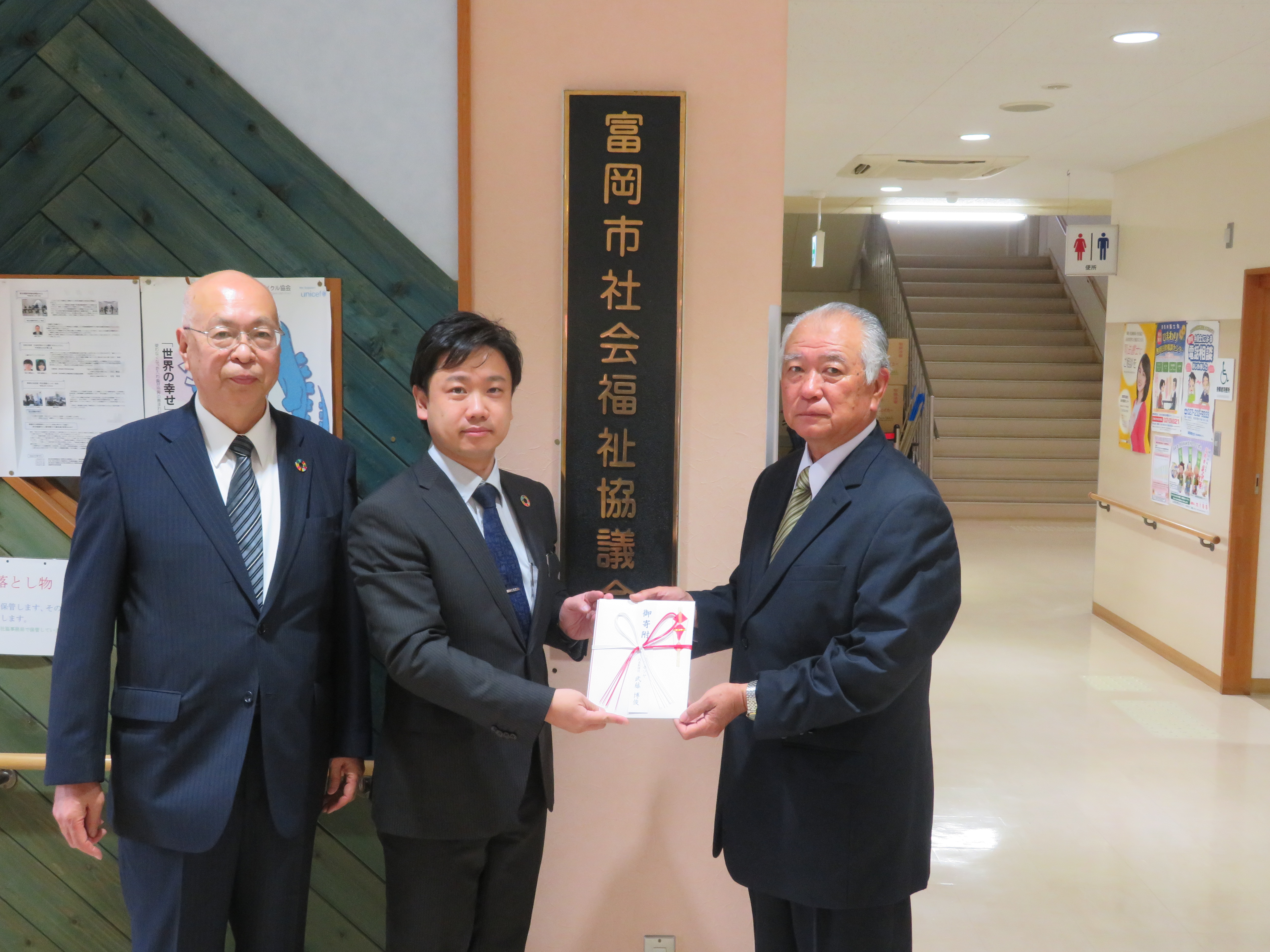 令和6年4月9日(火)、富岡市民生委員児童委員協議会(渡邉悦男会長)より令和6年能登半島地震災害義援金をお預かりしました。