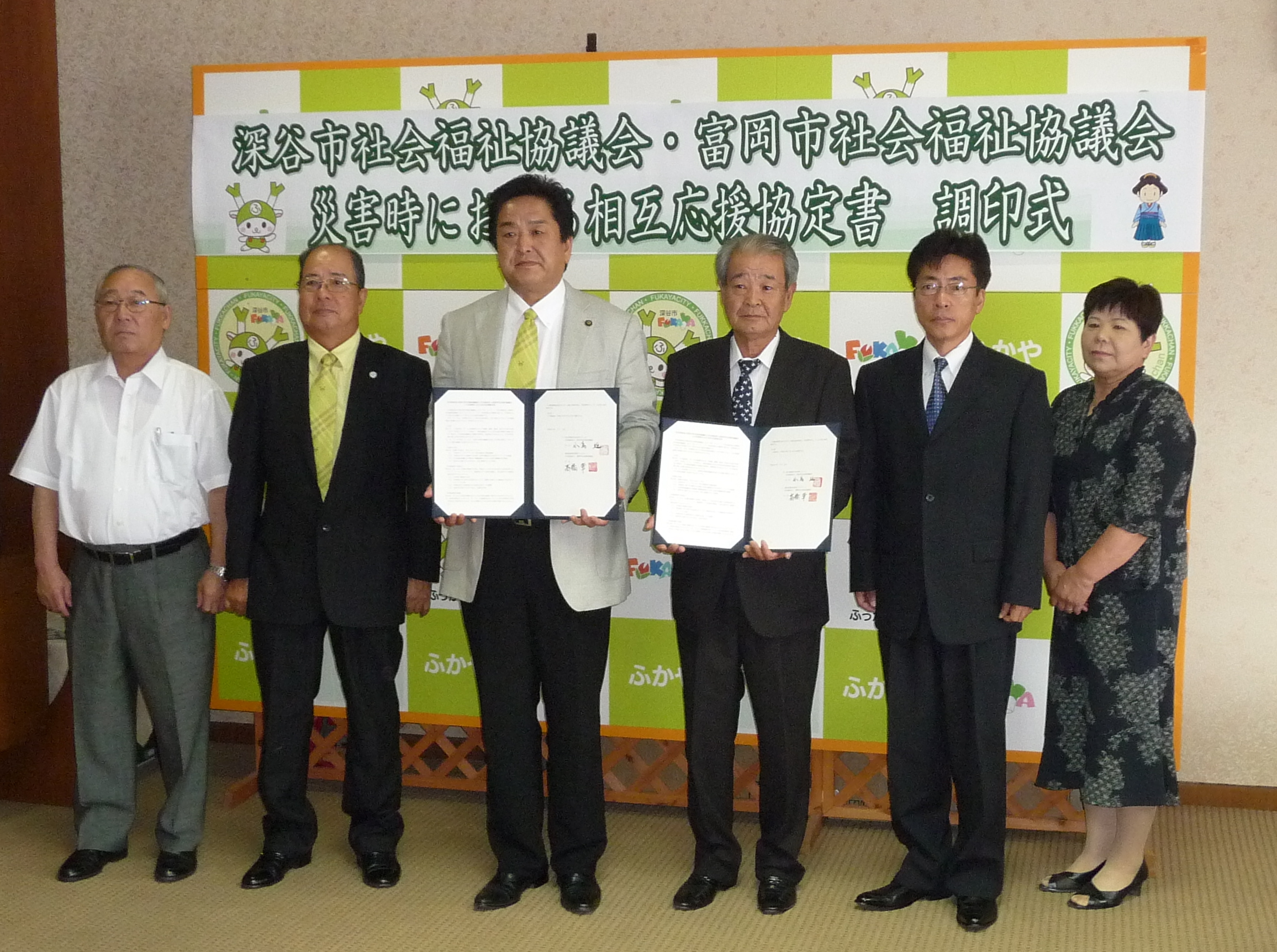 7月3日、深谷市社会福祉協議会(埼玉県)と災害時に相互応援する協定を結び、深谷市役所において調印式を行いました。
