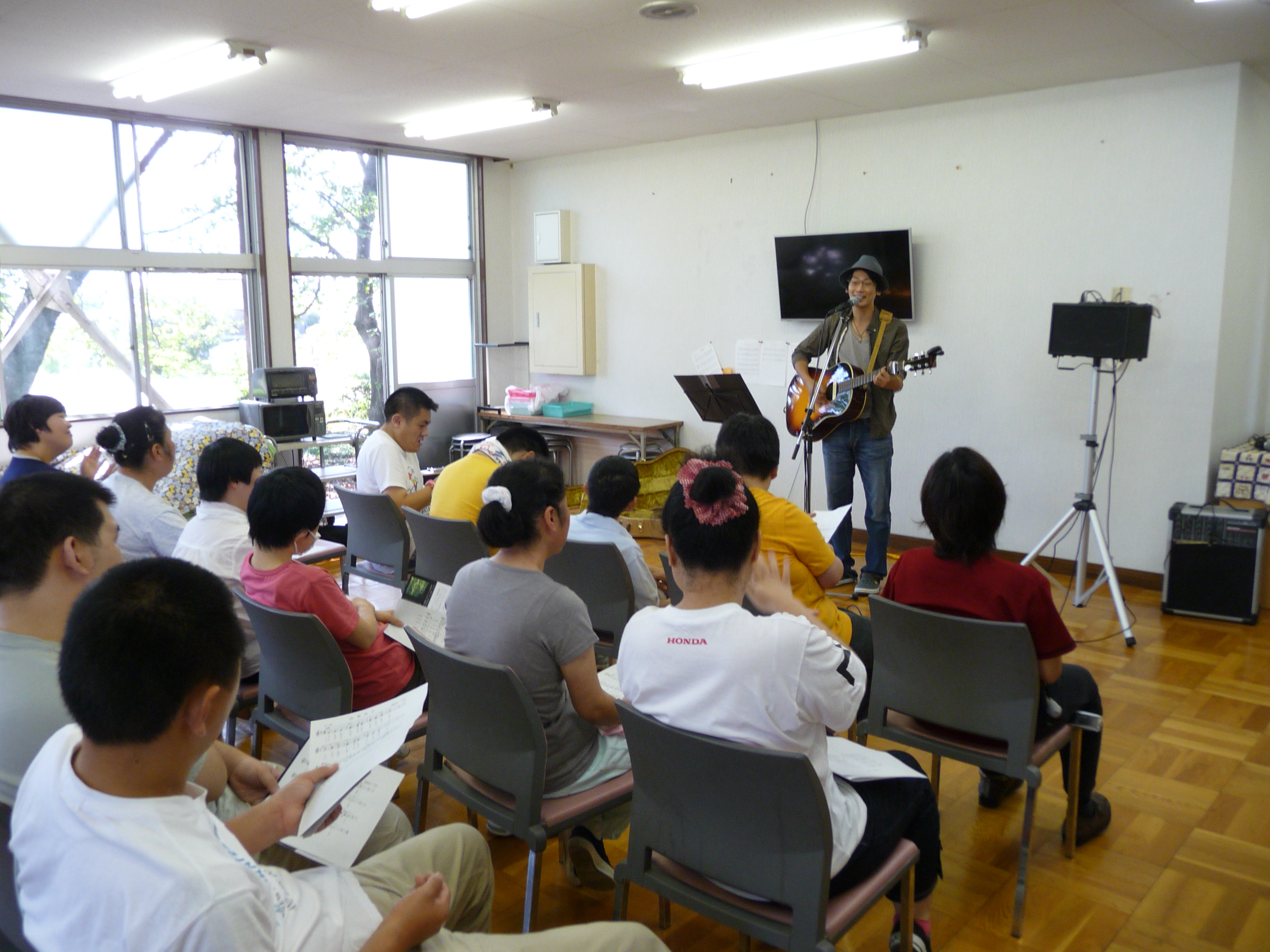 全国各地の福祉施設をボランティアで訪問している千葉県出身のシンガーソングライター深沢繁人さんが、つくし学園と妙義白雲寮で歌声を披露されました。